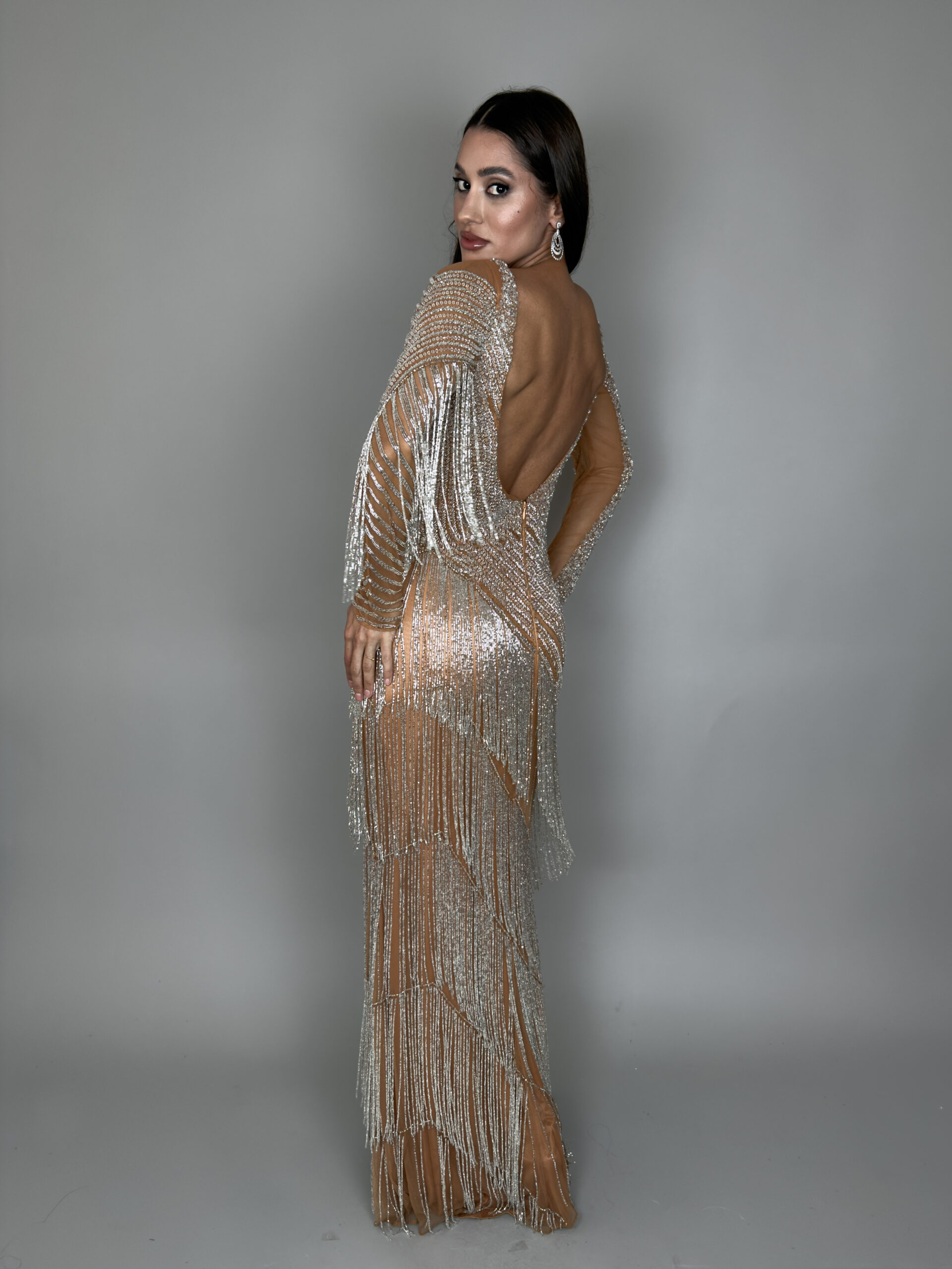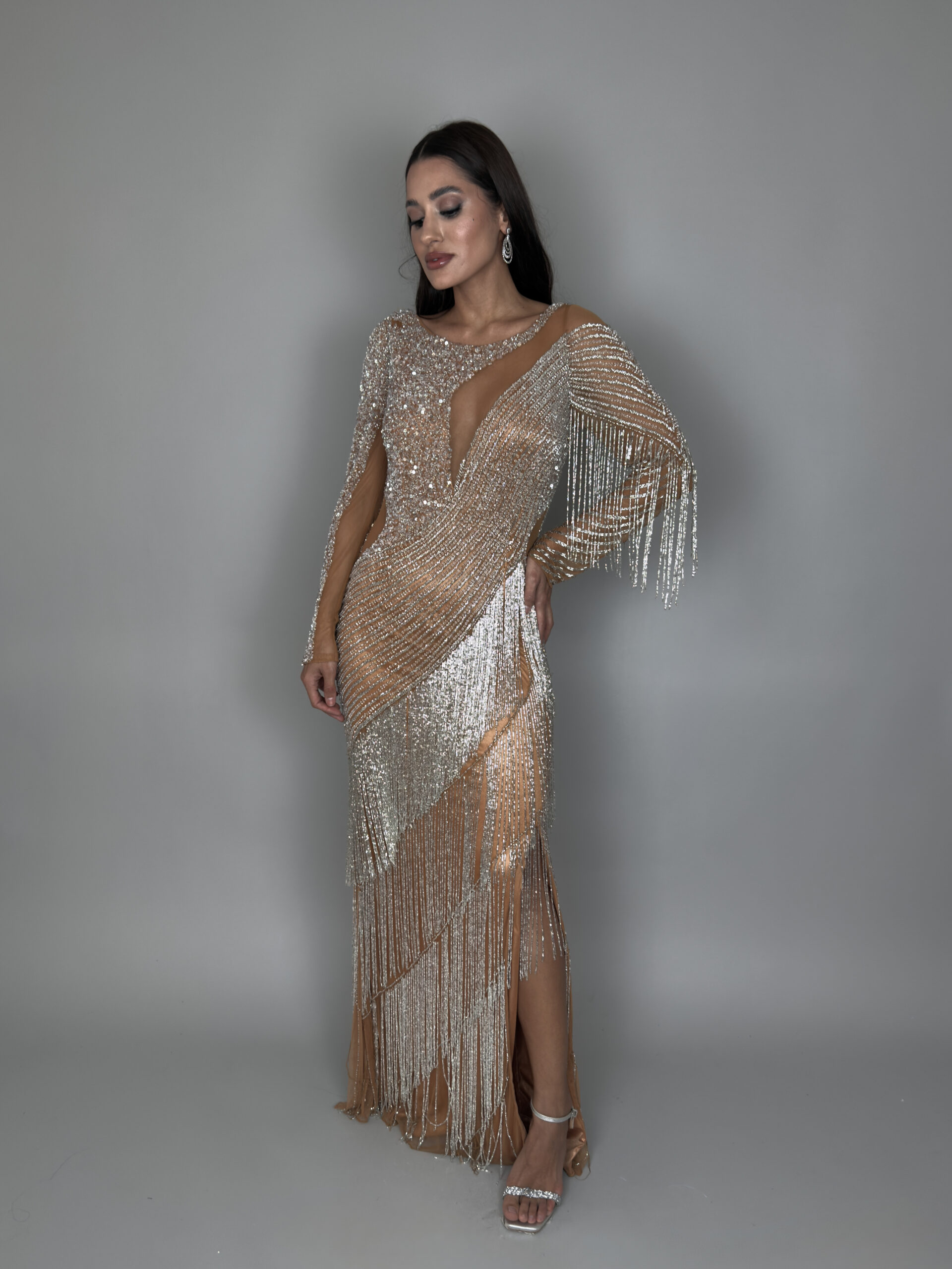 Tags: bordado, brilhos, franjas, manga, prata, vestido, vestido longo