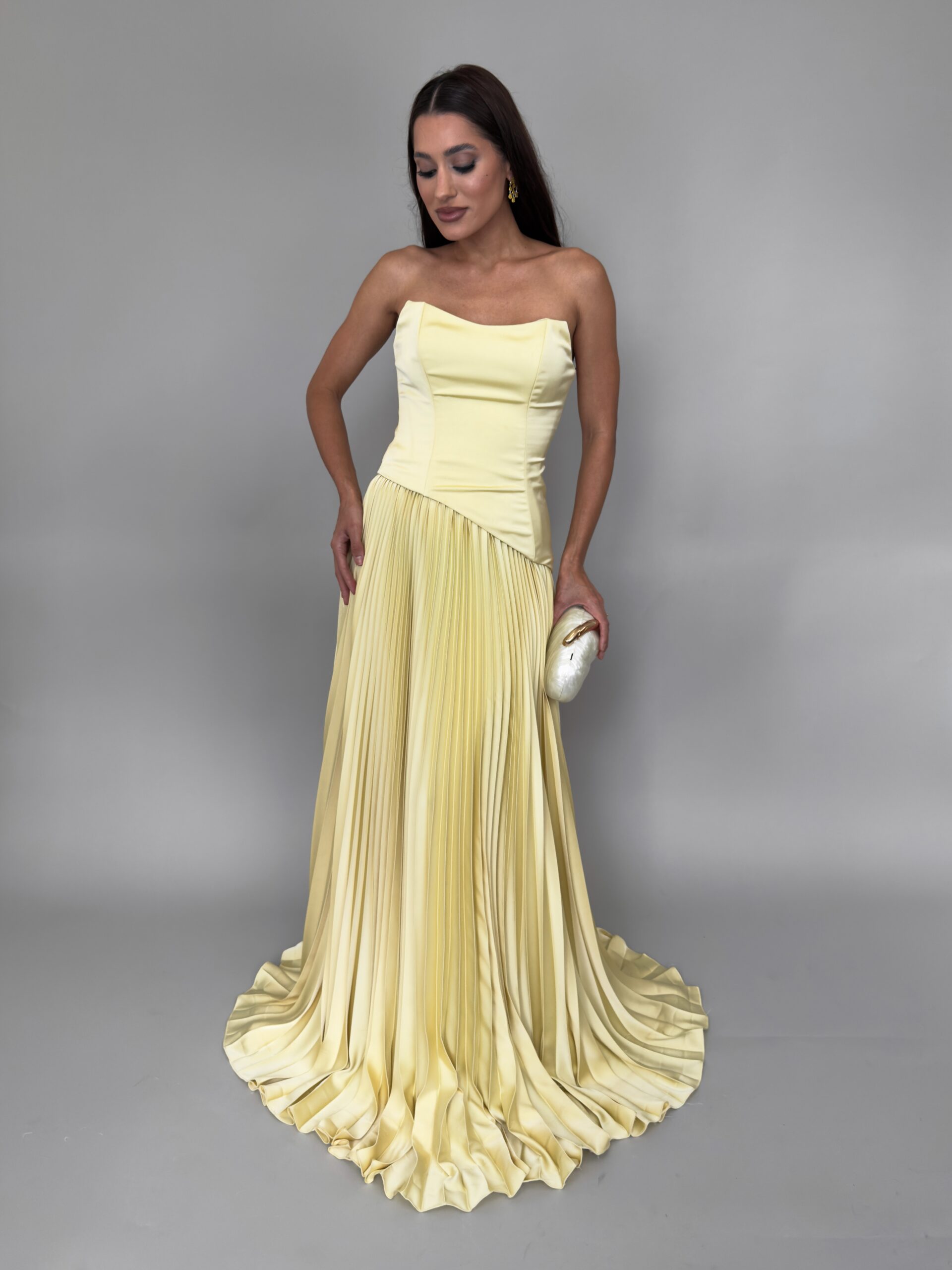 Tags: amarelo, conjunto, corset, liso, plissado, tomara que caia