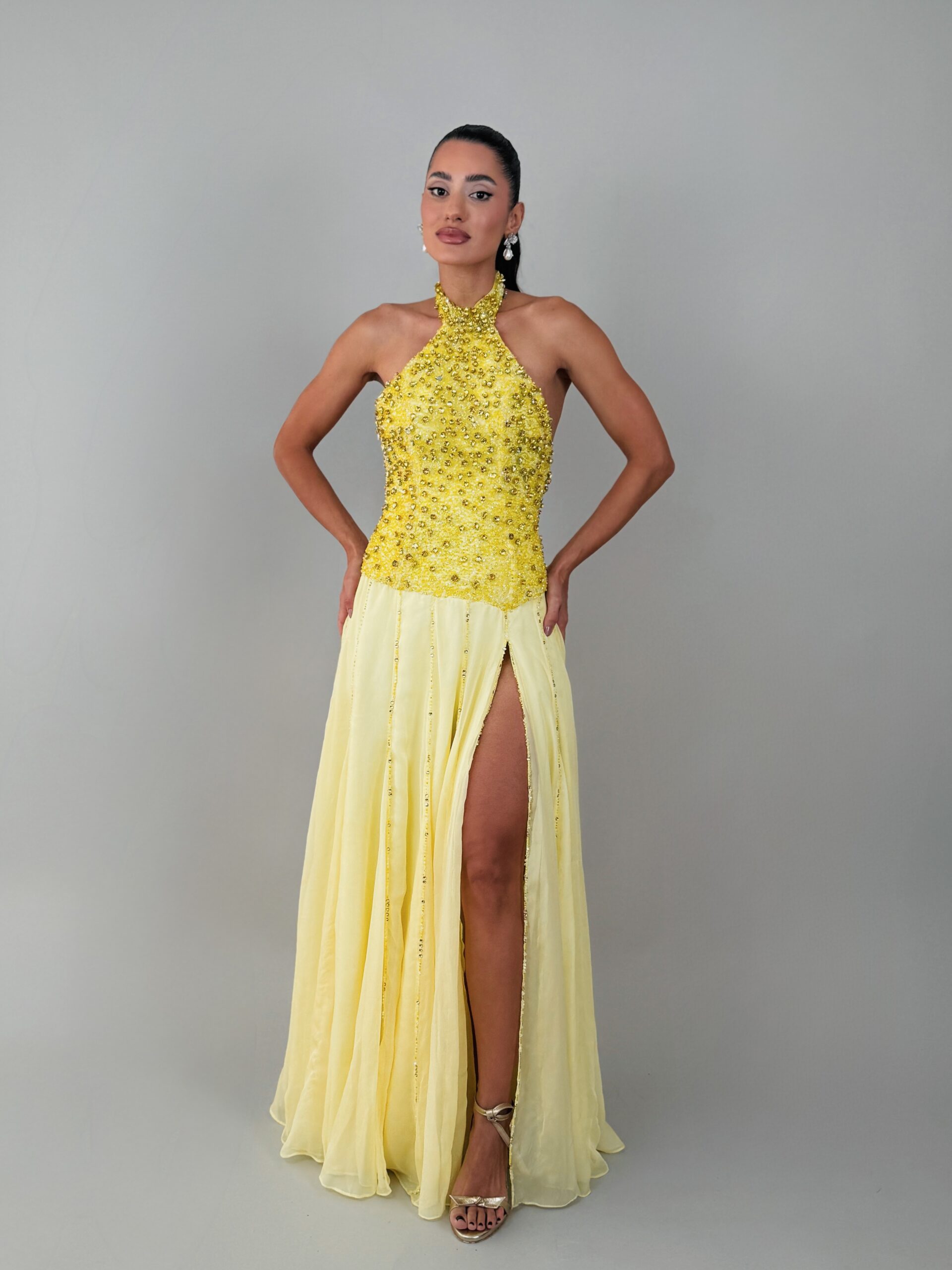 Tags: amarelo, bordado, brilhos, vestido, vestido longo