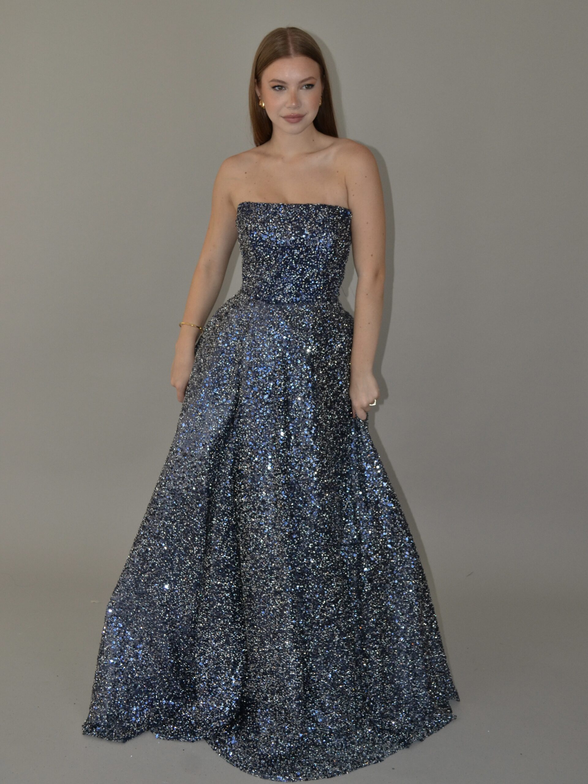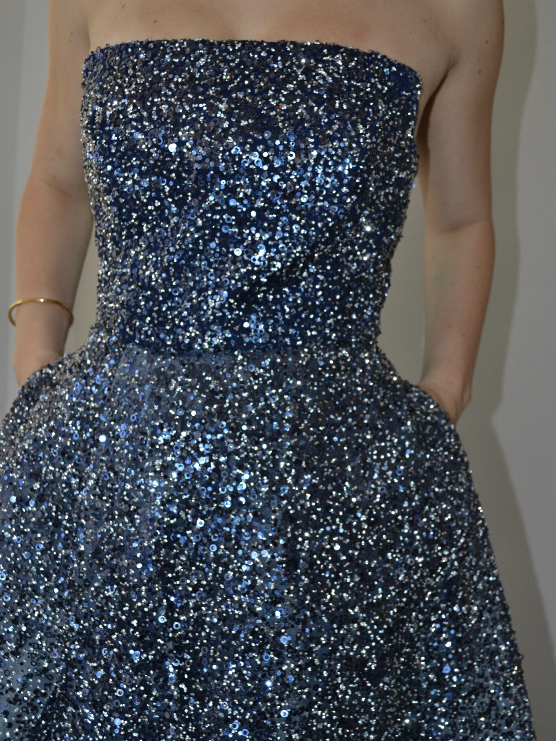 Tags: azul marinho, brilhos, tomara que caia, vestido longo