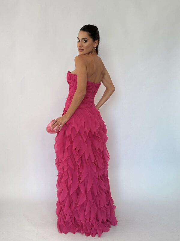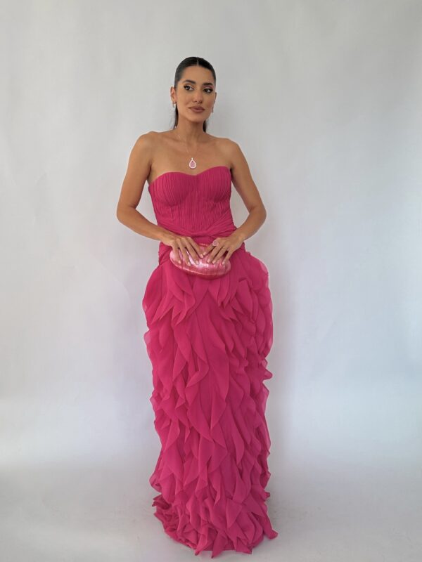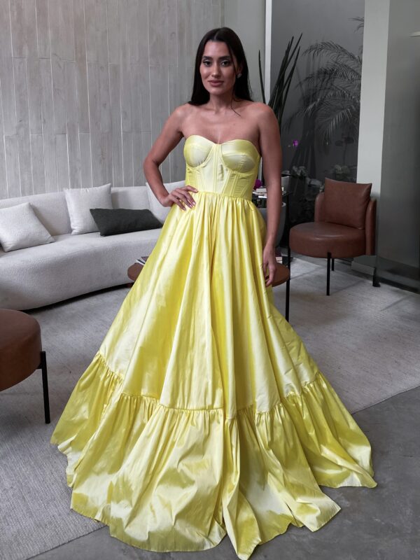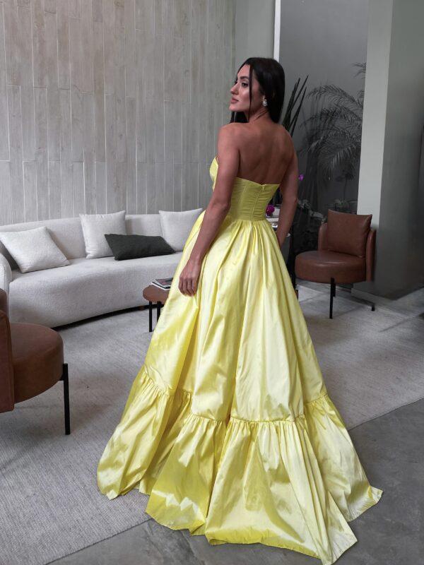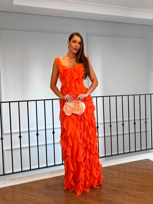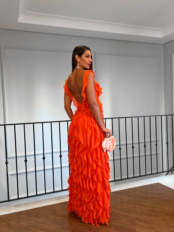 Vestido fluido de um ombro só e gola. Também disponível no azul royal, vermelho e marrom.